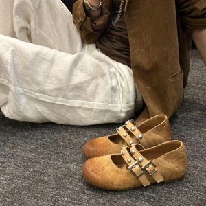 2025 新款磨砂皮玛丽珍女鞋 金属扣珍珠铆钉复古软底单鞋支持混批