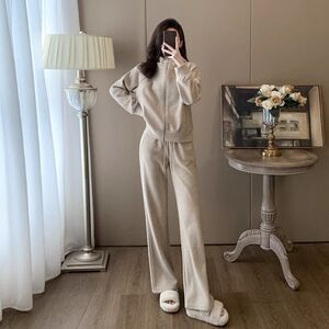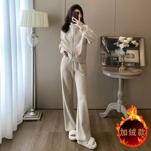 欧货高端连帽加绒卫衣套装女秋冬时髦洋气休闲运动服阔腿裤两件套