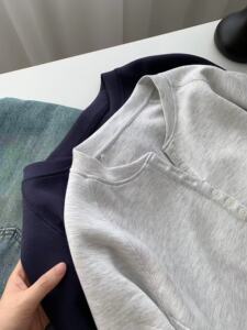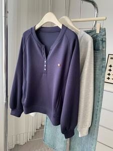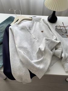 巨爱韩系中性风纽扣亨利领套头卫衣女宽松百搭慵懒减龄外套秋季