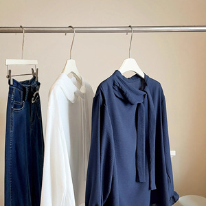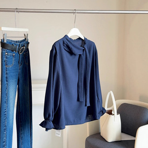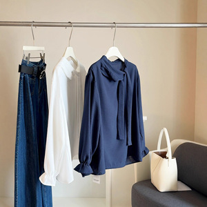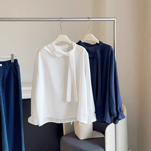 韩系设计感飘带领薄款衬衫女秋季2025新款宽松显瘦百搭衬衣A6905