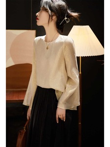 哥家商场同款女装2025秋季时尚气质圆领长袖微喇长袖防晒衬衫上衣