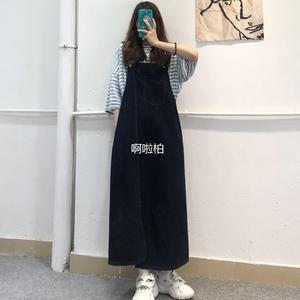 牛仔背带长裙女春秋新款宽松显瘦小个子夏款设计感小众吊带连衣裙