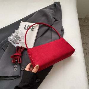 2025秋季小众法棍腋下包复古纯色简约女士单肩包时尚休闲斜挎包女