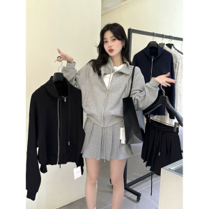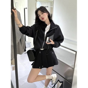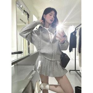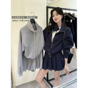 韩系两件套清新简约气质立领拉链卫衣外套+高腰抽绳半身裙套装秋