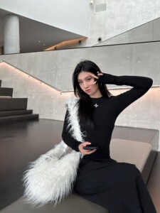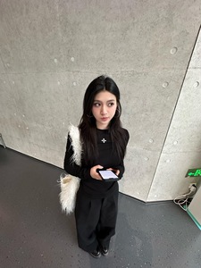 辣妹黑色圆领长袖内搭打底衫女秋季纯棉正肩t恤修身紧身短款上衣