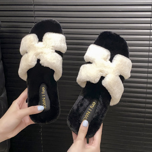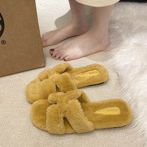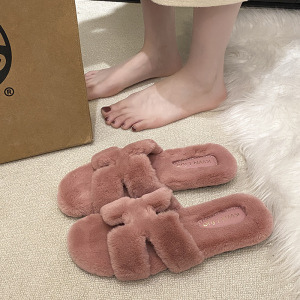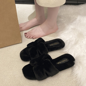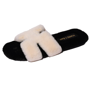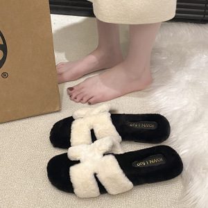 平底毛毛拖鞋女外穿2025秋冬新款时尚百搭毛茸茸休闲一字拖鞋