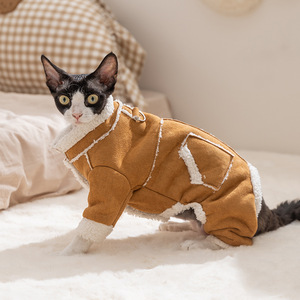 猫咪衣服秋冬季麂皮绒加厚保暖四脚棉衣德文猫幼猫幼犬宠物衣服