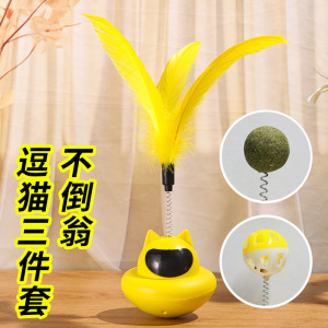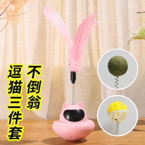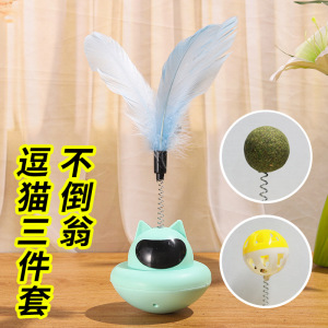 跨境批发猫咪不倒翁羽毛逗猫棒铃铛自嗨解闷猫咪玩具猫薄荷摇摇乐