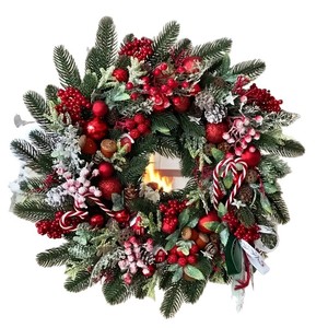 爆款圣诞节花环松果浆果松柏装饰跨境亚马逊冬季Christmas Wreath