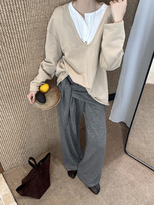 初打十三行2025秋新款法式针织两件套设计感微喇叭阔腿裤女KB981