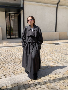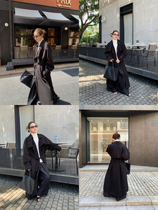 万为 老钱风双排扣外套女2025年秋冬新款微皱感收腰长款风衣P3816