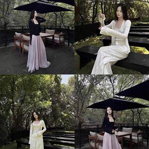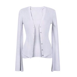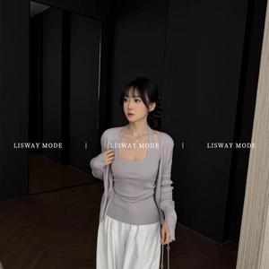 濮院毛衫厂 初秋针织开衫外套女长袖薄款挂脖背心设计感两件套装