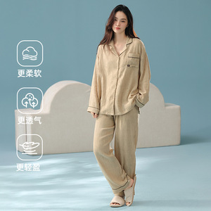 【A类双层纱】纯棉睡衣女秋季梭织棉100%全棉简约家居服女士套装