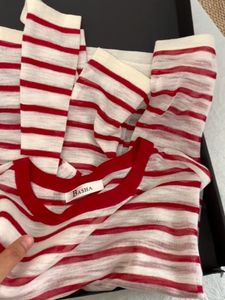 韩系红色条纹薄款冰丝针织防晒罩衫女夏季新款独特超好看宽松上衣
