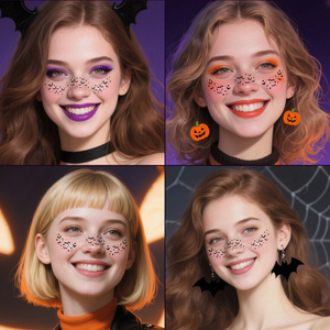 跨境亚马逊万圣纹身贴纸节黑色蝙蝠脸贴装饰仿真妆容贴水转印