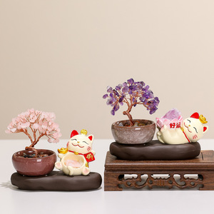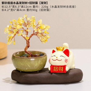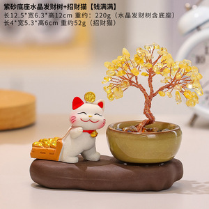 新款招财猫天然水晶原石黄水晶发财紫水晶摇钱树入户玄关好运摆件