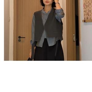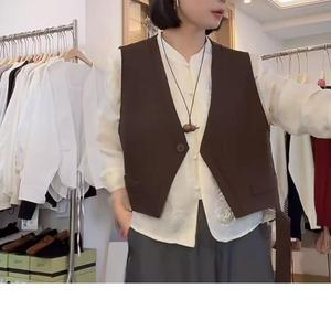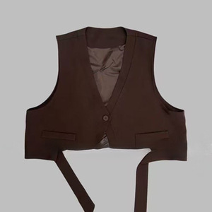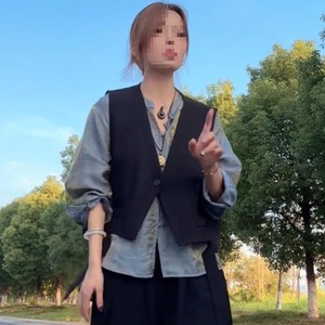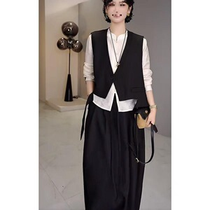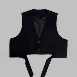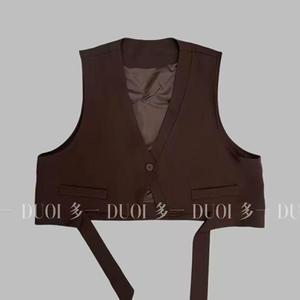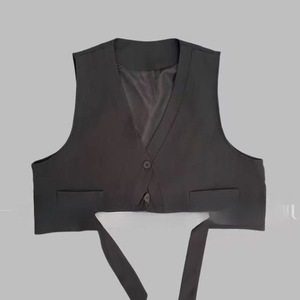 西装马甲秋季不规则飘带坎肩一粒扣无袖外搭马甲2025黑色马甲