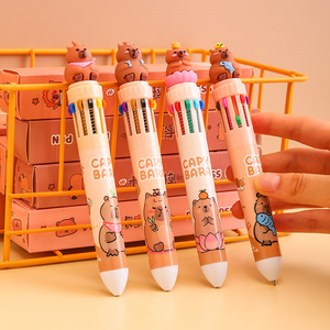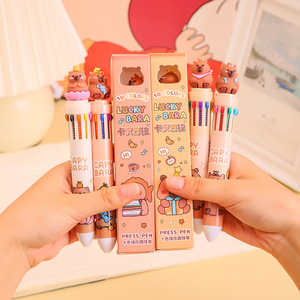卡皮巴拉十色圆珠笔创意学生文具一笔多色可爱按压式10色笔按动笔