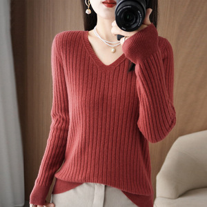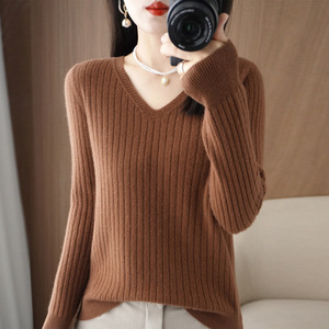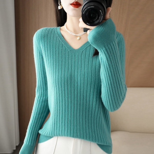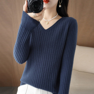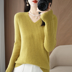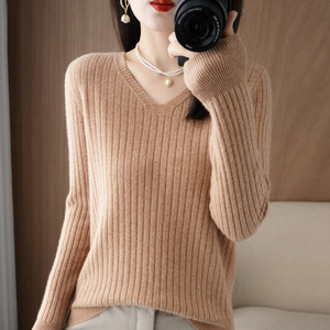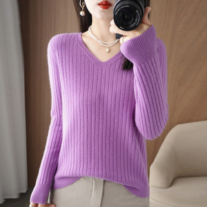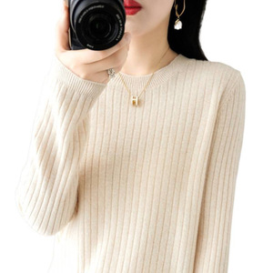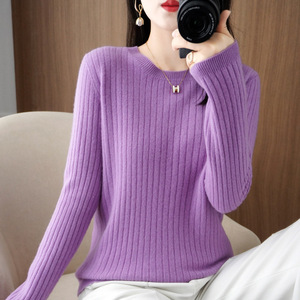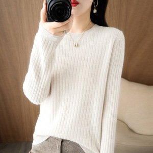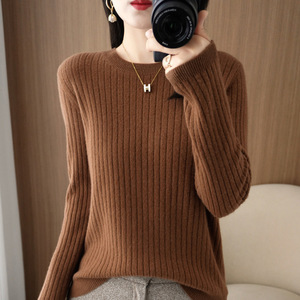 秋冬新款圆领毛衣女抽条内搭打底衫洋气百搭宽松羊毛针织上衣春装