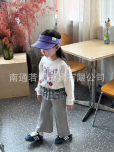 【现货】25秋冬新 韩版女童秋季黑格花边百搭阔腿裤