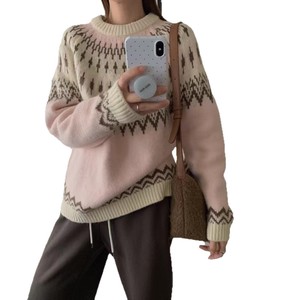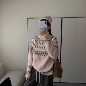 韩版复古设计感费尔岛套头毛衣女2025新款时尚百搭加厚提花针织衫