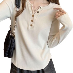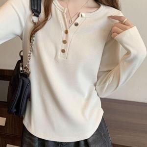 螺纹半开领不规则打底衫女内搭大码女装春秋冬显瘦大码长袖上衣女