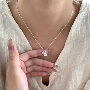 蓝色爱心方块项链