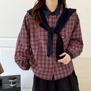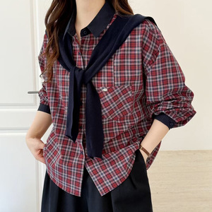 红色格子衬衫女长袖秋季新款感复古洋气减龄休闲显瘦上衣女