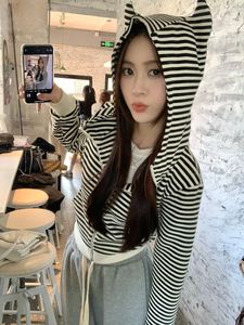 【自家工厂现货】设计感小众条纹小恶魔角韩版连帽女卫衣外套上衣