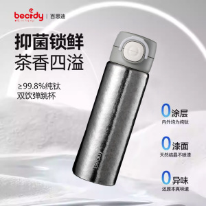 百思迪纯钛保温杯双饮弹盖水杯双层真空钛杯高颜值便携水杯礼品杯