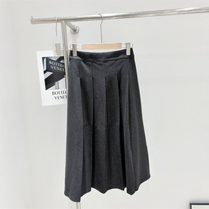 韩国订单秋冬新款宽松中长款高腰气质厚百褶裙加厚松紧腰半身裙女