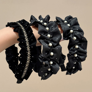高级感黑色发箍女2025新款宽边高颅顶压发头箍仿珍珠褶皱发卡头饰