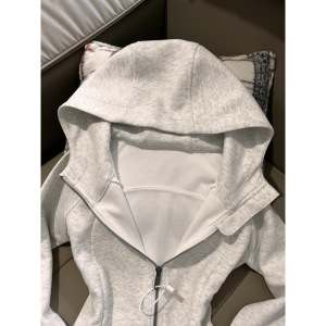 连帽上衣美式灰色正肩修身开春穿搭卫衣收腰外套女装春秋2025新款