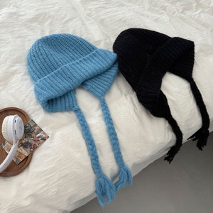 纯色麻花辫子抽身针织帽大头围秋冬搭配个性显脸小圆顶帽休闲防风
