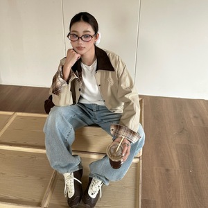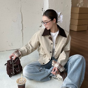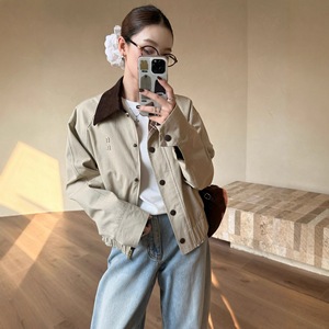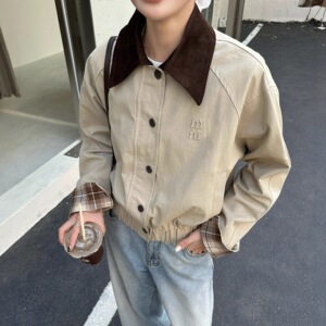 25秋季M家新款胸前字母刺绣撞色拼接翻领排扣休闲夹克外套长袖潮