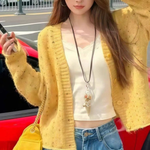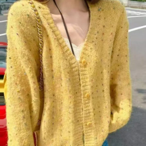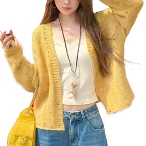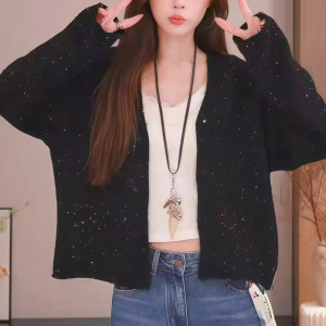 2025秋冬季新款彩色毛球V领开胸爆款百搭外套超柔外穿上衣