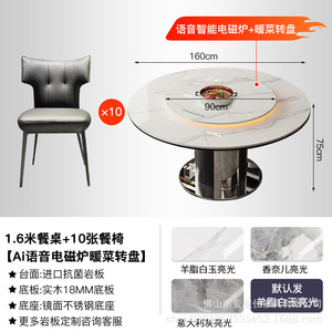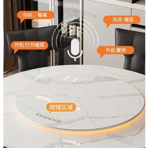 AI智能语音控制暖菜电动转盘圆形岩板餐桌现代家用商用电磁炉饭桌