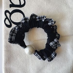 韩版高级感珍珠头绳简约格纹边褶皱小肠发圈气质百搭马尾发绳皮筋