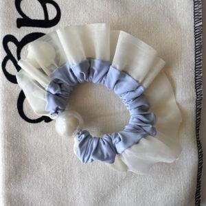 奶蓝发圈—大珠宽纱边