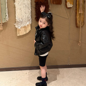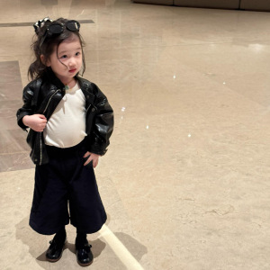 女童套装2025新款秋装儿童洋气炸街机车服皮衣宝宝宽松百搭直筒裤
