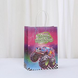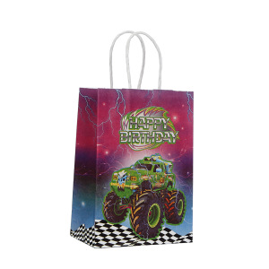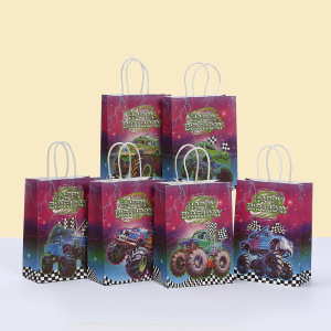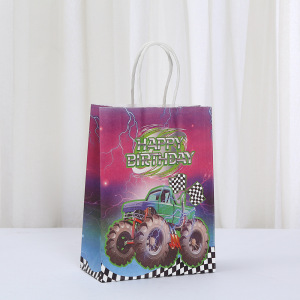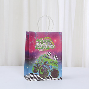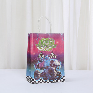 炫酷彩色手提纸袋卡通炫彩越野车印花牛皮纸袋子送男生礼品包装袋