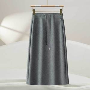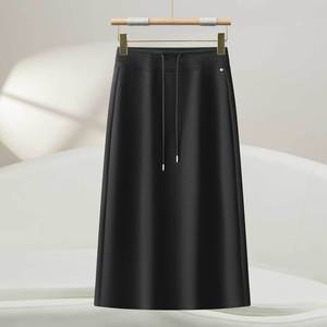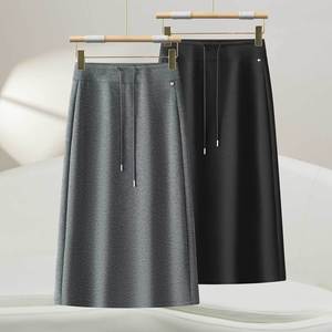 高腰A字中长裙显瘦直筒抽绳后开叉卫裙2025早秋新款半身裙休闲裙