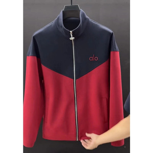 高档欧洲拼色立领长袖轻奢拉链时尚夹克外套秋季男士潮流休闲百搭