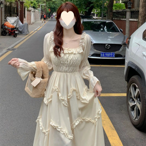 显瘦初恋温柔仙女公主连衣裙裙子气质长裙纯欲洛丽塔泡泡袖连衣裙