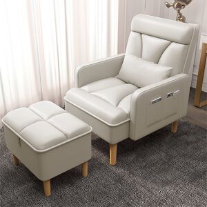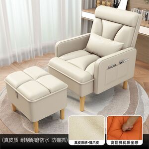 乳白色沙发椅+脚踏【猫抓皮】真皮质感