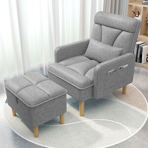 灰色沙发椅+脚踏【麻布面料】