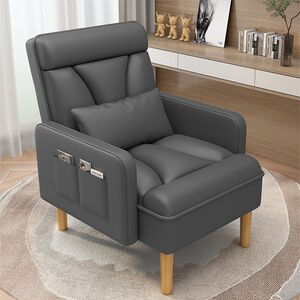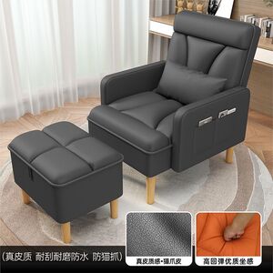 灰色沙发椅+脚踏【猫抓皮】真皮质感