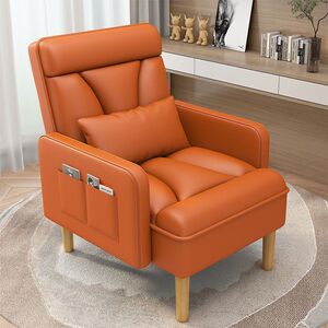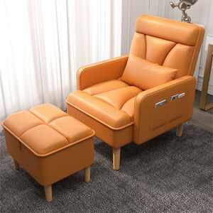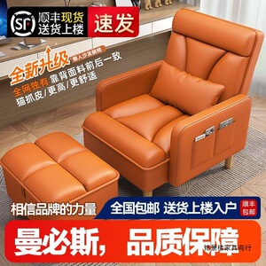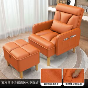 橙黄色沙发椅+脚踏【猫抓皮】真皮质感