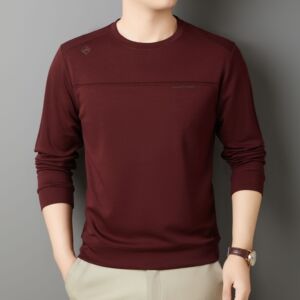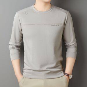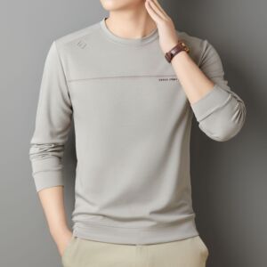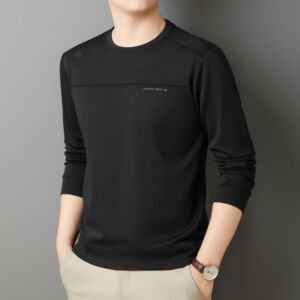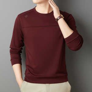 含桑蚕丝羊毛长袖卫衣男式秋季休闲百搭圆领弹力打底衫体恤上衣