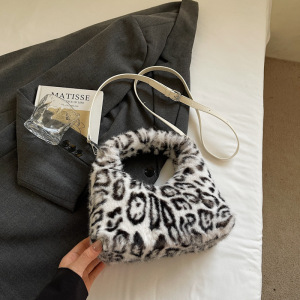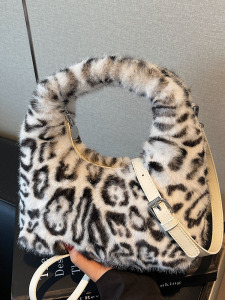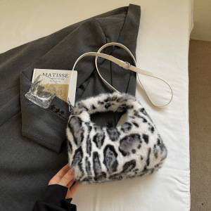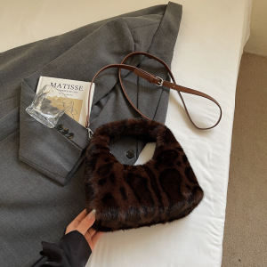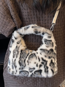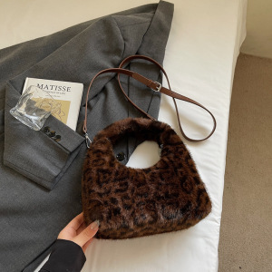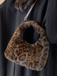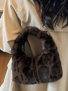 简约毛绒绒毛毛个性潮流2025豹纹小清新时尚女士手提腋下单肩女包
